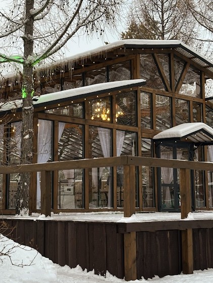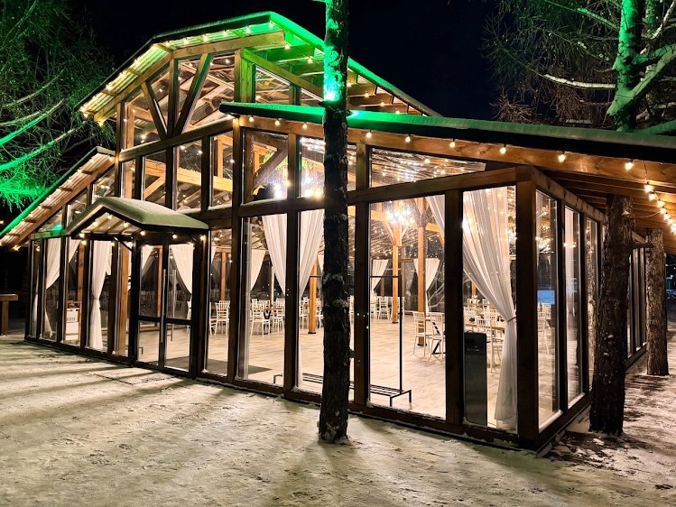 Банкетный зал расположен в черте города, на большой территории, находящейся в парке Целинников.